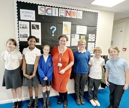 SCIENCE: St Monica Primary School in Sholing, Southampton, has been awarded a Primary Science Quality Mark (PSQM) for commitment to excellence in science leadership, teaching and learning. Pictured, Science lead Emma Bocock with pupils.